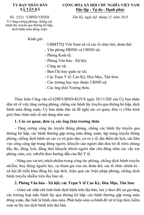Thực hiện Công văn số 516/SYT-ATTP ngày 20/01/2026 của Sở Y tế tỉnh Thái Nguyên về việc bảo đảm an toàn thực phẩm (ATTP) trong dịp Tết Nguyên đán Bính Ngọ và mùa Lễ hội Xuân năm 2026, Ủy ban nhân dân xã Tân Kỳ đã chỉ đạo các cơ quan, đơn vị liên quan và các cơ sở sản xuất, kinh doanh thực phẩm trên địa bàn triển khai đồng bộ các biện pháp nhằm phòng, chống ngộ độc thực phẩm, bảo vệ sức khỏe Nhân dân.