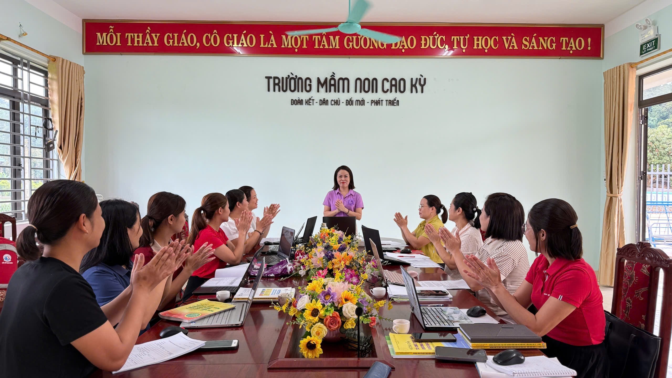 Thực hiện kế hoạch nhiệm vụ năm học 2025-2026, ngày 27/8/2025, cụm các trường mầm non trên địa bàn xã Tân Kỳ gồm Mầm non Cao Kỳ, Mầm non Hòa Mục và Mầm non Tân Sơn đã tổ chức buổi sinh hoạt chuyên môn với sự tham gia của Ban Giám hiệu và tổ chuyên môn các trường trong cụm.